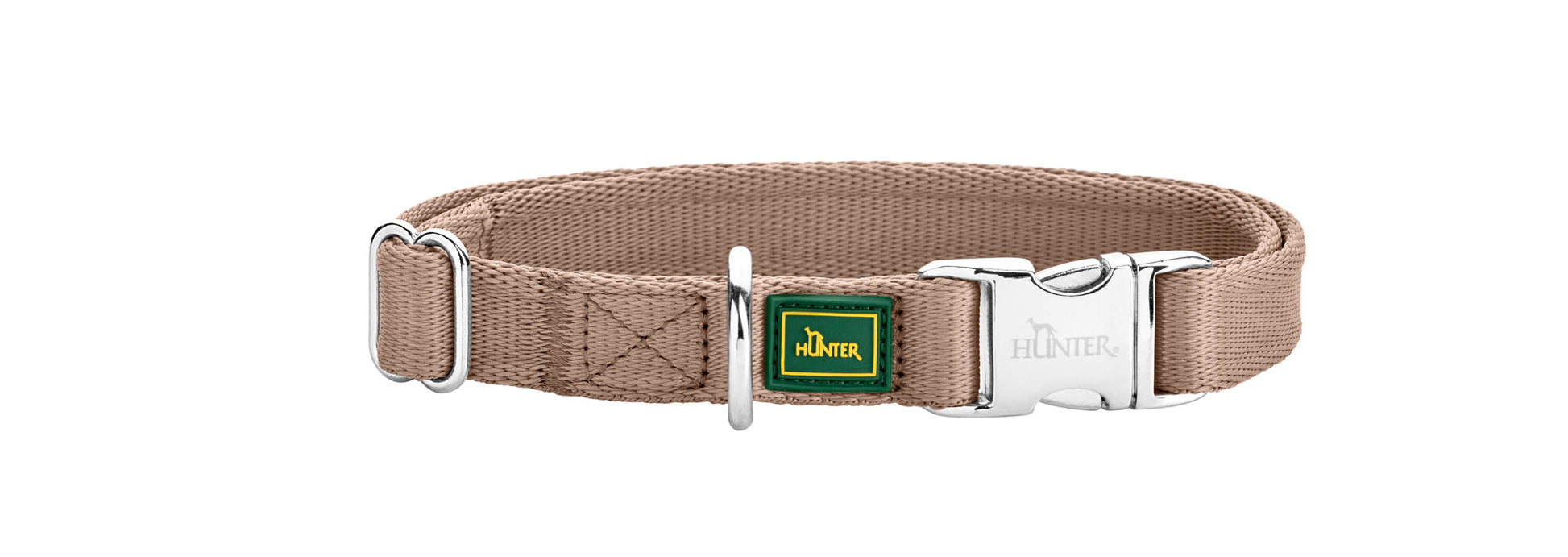 Hecho de nailon suave pero resistente, el collar se puede apretar o aflojar con un control deslizante de metal y cuenta con un anillo en D para sujetar una correa. Además, tiene un cierre de aluminio ALU-STRONG, muy fácil de abrir y cerrar.